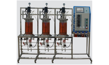 發(fā)酵罐利用機(jī)械攪拌攪拌物料產(chǎn)生軸向和徑向流動,從而使罐內(nèi)物料混合良好,液體中的固形物保持懸浮狀態(tài),有利于固體和營養(yǎng)物質(zhì)充分接觸,便于營養(yǎng)吸收;另一方面,可以打碎氣泡,增加氣液接觸面積,提高氣液間的傳質(zhì)速率,加強(qiáng)氧的傳遞效果及消除泡沫。同時通入無菌空氣維持菌體氧氣需要,滿足好氧菌的生長發(fā)酵。