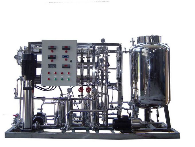 3、預(yù)處理-反滲透-中間水箱-水泵-EDI裝置-純化水箱-純水泵-紫外線(xiàn)殺菌器-0.2或0.5μm精密過(guò)濾器-用水對(duì)象