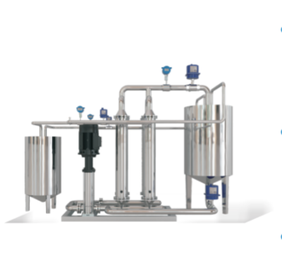 一個(gè)或多個(gè)模塊被合并到一個(gè)過(guò)濾系統(tǒng)中。循環(huán)泵提供循環(huán)流量,進(jìn)料泵提供過(guò)濾壓力。控制流量或壓力,濾液從模塊中流出。