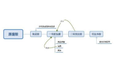 氯化水經陶瓷膜過濾后去除廢酸中的SS達到0.ppm以下,產水進行一級脫鹽,一級濃縮后的高鹽廢酸可以提純鈧之類的稀有金屬。由于一級產水中仍然有部分重金屬鹽,需要進行二級脫鹽,二級產水中的重金屬含量可以道道50ppm以下,低鹽廢酸可用于沖渣水,二級濃縮液返回一級繼續(xù)濃縮。