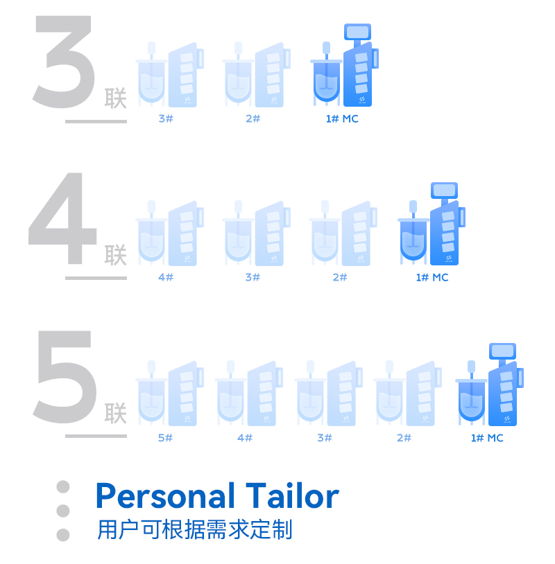 模塊化設(shè)計(jì)理念使得Cla210系列是多聯(lián)罐的最佳呈現(xiàn)系統(tǒng),通過搭積木的方式,輕松實(shí)現(xiàn)雙聯(lián)罐、三聯(lián)罐、四聯(lián)罐、五聯(lián)罐和六聯(lián)罐,以及更多的聯(lián)罐系統(tǒng),用戶可以分開使用,也可以統(tǒng)控使用,對于需求不同的用戶和場景極具適應(yīng)性與兼容性。